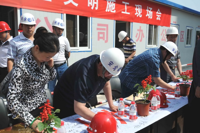 2010年6月4日,張家口住建局在我集團六公司承建的張家口親河苑小區(qū)項目部召開了建筑施工安全文明施工現(xiàn)場會,張家口市住建局局長李義、安監(jiān)站站長張芝祥及各區(qū)縣住建局、安監(jiān)站負責人,施工、監(jiān)理單位負責人共72個單位220余人出席了會議,并在我集團安全百日賽的宣傳條幅上了簽字。