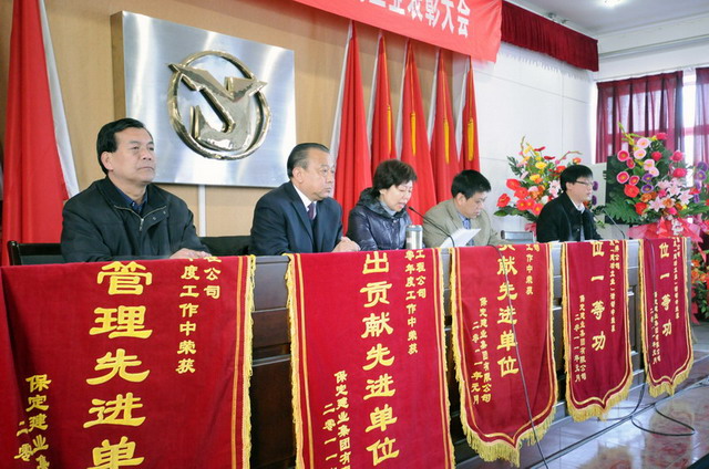 大會(huì)在莊嚴(yán)的國(guó)歌聲中拉開(kāi)了序幕,首先由集團(tuán)公司副總經(jīng)理要保林做《二零一零年度工作總結(jié)(草案)》,總會(huì)計(jì)師于廣志做《二零一零年度財(cái)務(wù)工作報(bào)告》,監(jiān)事會(huì)主席閆雙彥做《二零一零年度財(cái)務(wù)審核報(bào)告》,副總經(jīng)理谷進(jìn)寶做《二零一零年工作安排意見(jiàn)的報(bào)告(草案)》,工會(huì)主席黃春玲做《二零一零年度職代會(huì)工作總結(jié)及二零一一年度工作安排報(bào)告(草案)》。隨后全體與會(huì)代表對(duì)上述報(bào)告進(jìn)行舉手表決,均全票通過(guò)。會(huì)后,集團(tuán)公司董事長(zhǎng)兼黨委書(shū)記張?zhí)m柱同志做重要講話,總結(jié)了集團(tuán)公司在二零一零年工作中的經(jīng)驗(yàn)與不足,激勵(lì)廣大職工、股東代表在新的一年里為企業(yè)的快速發(fā)展繼續(xù)作好排頭兵、發(fā)揮表率作用,與廣大員工一起為集團(tuán)公司貢獻(xiàn)力量。